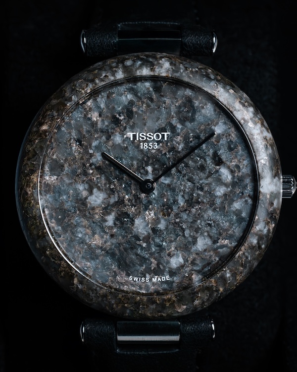 The story of Tissot’s RockWatch is intimately connected to Switzerland’s famed mountain range. Originally launched in 1985, it featured an entire case manufactured from a material that probably had never appeared in the realm of watches until then: Alpine granite from the cantons of Grisons, Ticino, and Valais. In various case sizes, 33mm or smaller, and fitted with red and yellow hands, the RockWatch was a quartz-powered timepiece that delighted collectors with the intricate details and characteristics of its stone.