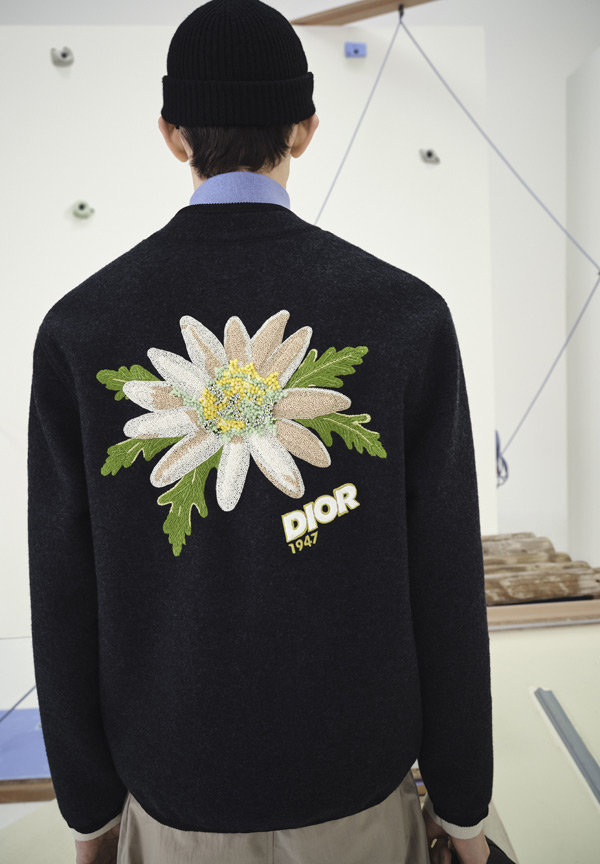 There’s a sense of simplicity in the designs, but not in a way one might consider uninspired or boring—they’re crafted to be relevent every ski season. The Dior Men visual language of blurring the line between the formal and informal comes in the form of brightly hued turtlenecks styled with everything from half-zip sweaters to checked shirts—pieces that one can wear without needing to be near a ski resort. But if you’re looking for a piece that is more emblematic of the House, a cardigan is crafted from virgin wool and features an embroidered edelweiss flower—often referred to as the “flower of the Alps”—on the back. Complete that with the Dior Slickrock shoes that are fitted with soles fashioned from Dior’s Cannage motif, and you’d easily score big on the style front.