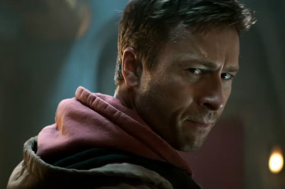 The plot of the movie revolves around an out-of-work, out-of-cash, out-of-luck guy named Ben Richards (played by a yoked Glen Powell) who's so desperate to scrape up the money to buy medicine for his sick kid that he volunteers to be a contestant on a death-sport reality show. For the better part of the movie, Powell's Richards is on the lam, pursued by a five-man squad of heavily armed sadist goons. Josh Brolin costars as the insidiously cynical brain behind the show, alongside Colman Domingo is its peacocking host.
