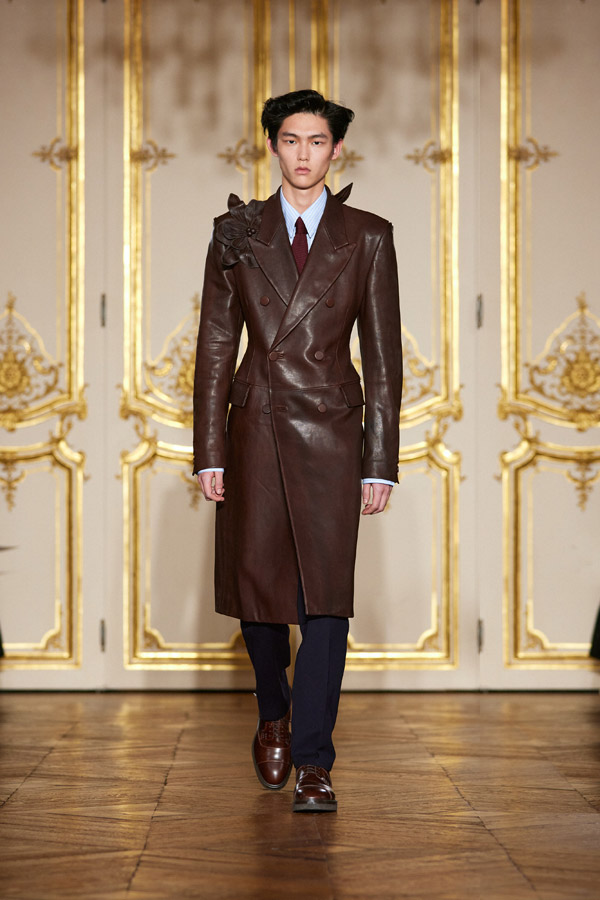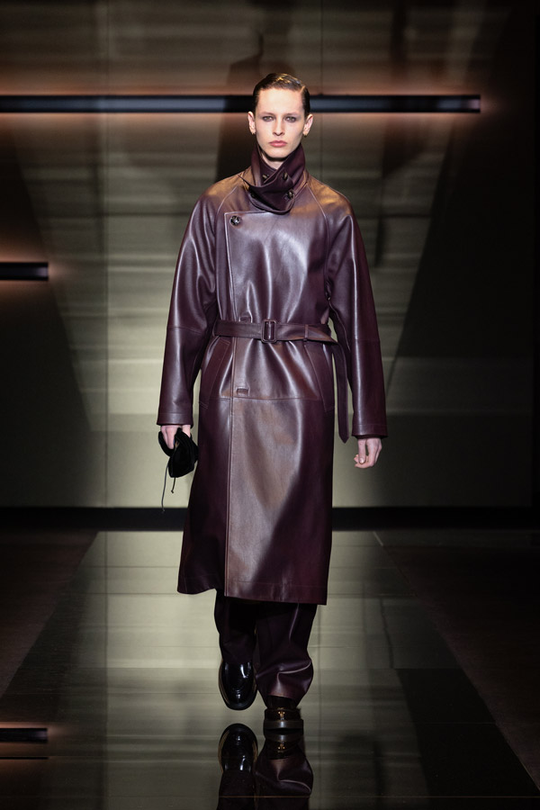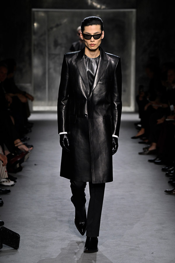 The key piece that makes the fit is the outerwear. Instead of a traditional cotton trench coat, the update prefers luxurious leather iterations. Amiri and Saint Laurent’s leather coats perfectly adopt the look with their tailored cuts yet crafted to be fluid for unrestricted movement. For an easy fix, wear one completely buttoned up as per Wooyoungmi and Emporio Armani without needing to suit up under—no one has to know what lies beneath.