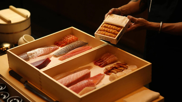 Seven course lunch sets at Fukui retail from SGD138 to SGD168 for seven courses. For lunch and dinner, Sushi Omakase retails from SGD188 to SGD258 for five courses. The omakase menu retail from SGD288 for nine courses to SGD388 for ten. If you want some bincho-tan action with your sushi, it is only available for dinner.