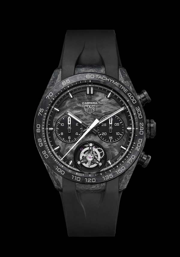 Marking its launch, TAG Heuer chose two of its signature creations to house the new oscillator: the Monaco Flyback Chronograph TH-Carbonspring and the Carrera Chronograph Tourbillon Extreme Sport TH-Carbonspring.