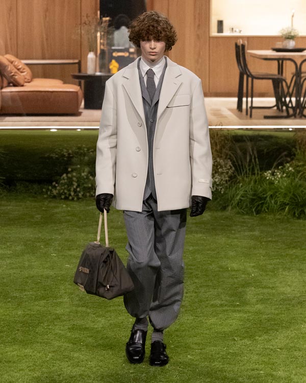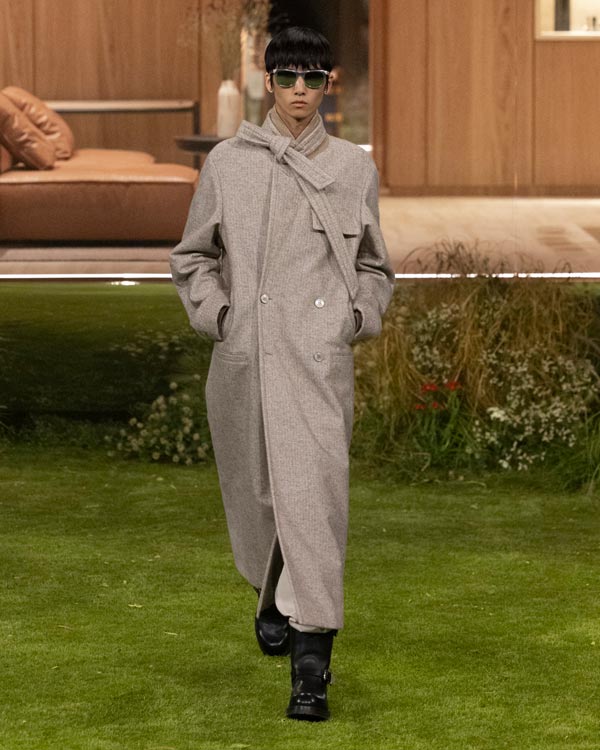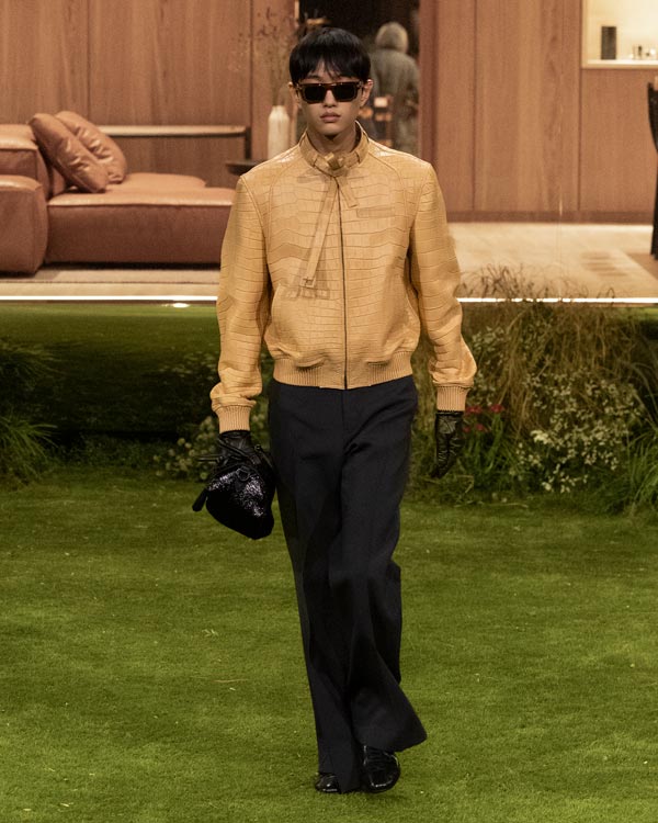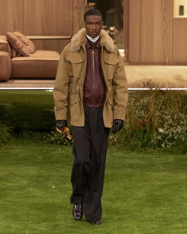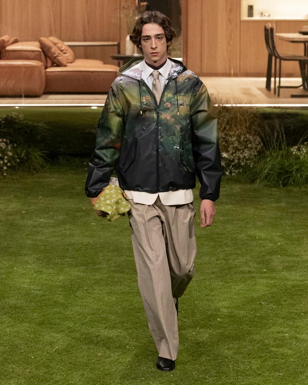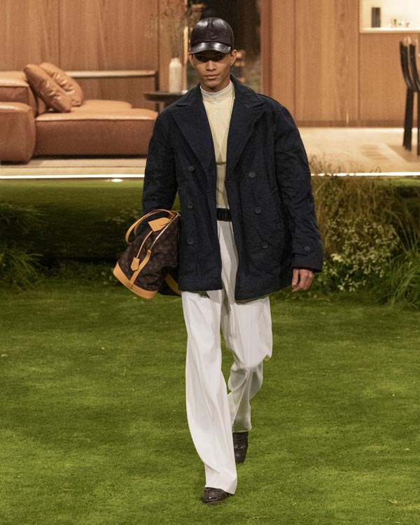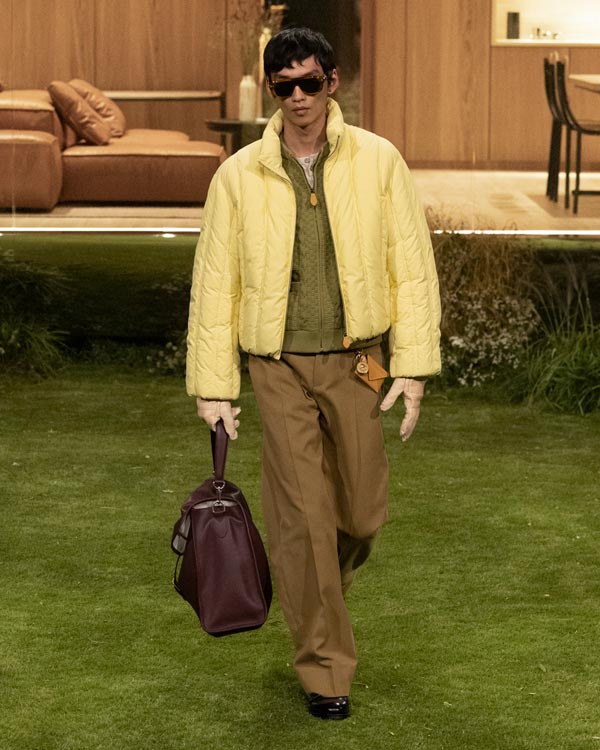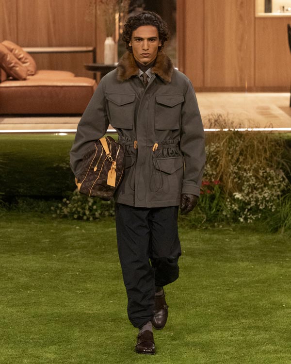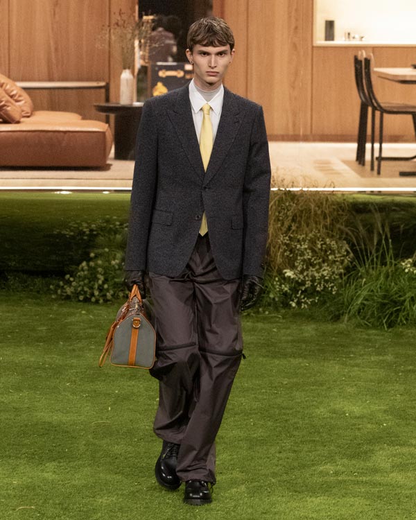 The details: Where the collection really flexed Louis Vuitton’s muscle was in its material play. Vicuña was disguised as workwear, while silk appeared like nylon. Even the Monogram (a motif that's celebrating its 130th anniversary this year) was treated with restraint.
