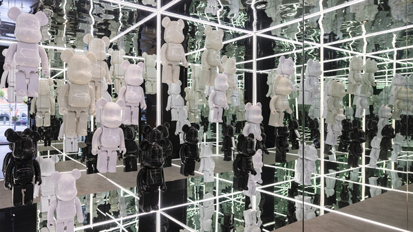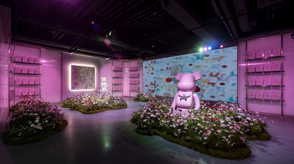 Climb up to the third floor and the mood shifts into something a little more intimate and poetic. Here, Ken Yashiki presents a BE@RBRICK that's inspired by his 2016 work PAUSE-Usa Usa. What makes this piece so moving is that it incorporates clothing once worn by his daughters. For Yashiki, this was the first time he had ever used garments with such personal history, and it marks a turning point in his artistic journey. Surrounded by a sea of cosmos flowers, the installation feels almost like a garden of remembrance.