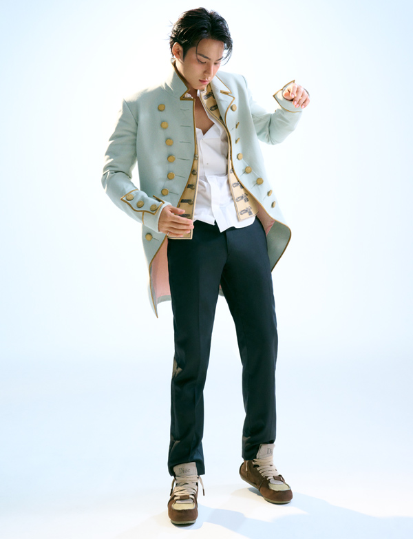 Men’s Revolution coat, Revolution waistcoat, shirt, trousers and Dior Roadie shoes, DIOR