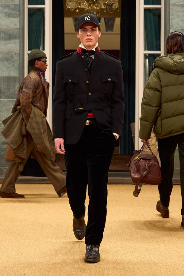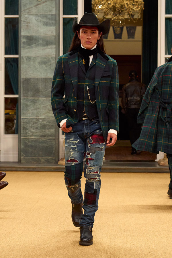 The fit: Consisting of the Polo Ralph Lauren and the Ralph Lauren Purple Label collections, the runway opened up with the former—a rugby shirt in vibrant hues that matched the knitted patterns of a hoodie as well as the necklace it was styled with. Even if you were to cover up the branded logos—as with every other Polo Ralph Lauren collection, at least one item on a look would bear the name of the brand—you could immediately tell that it's Ralph Lauren head to toe.