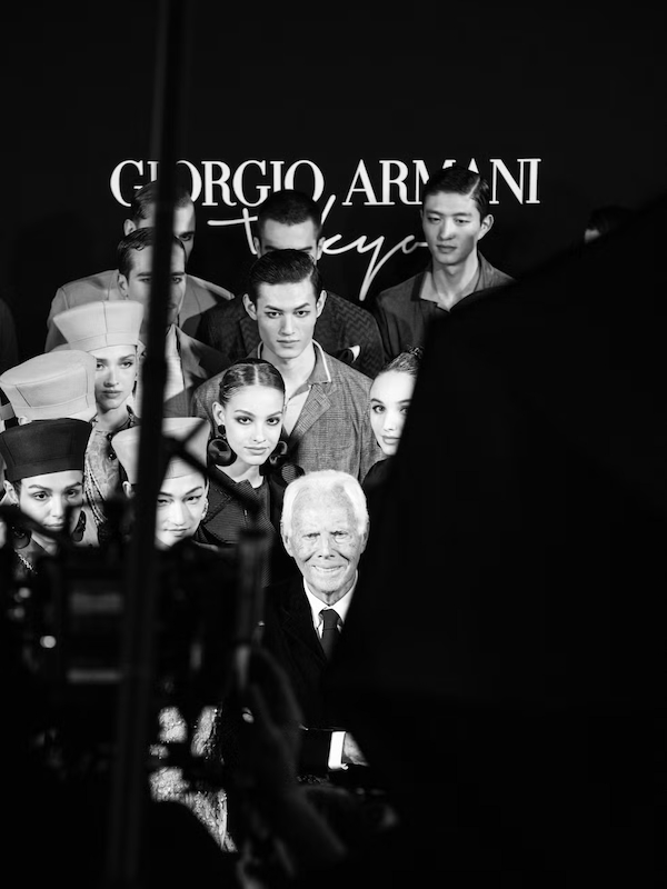 On the morning of the day before the day of the Giorgio Armani cruise show, Mr Armani appears at a press conference for members of the Japanese fashion and business media, in a packed room on the ninth floor of the newly renovated Armani/Ginza Tower, in Tokyo’s swankiest shopping district.