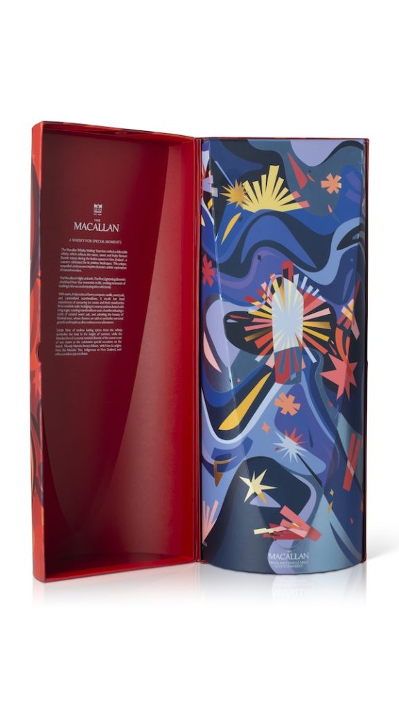 Continuing The Macallan’s tradition of collaborating with artists, this edition's packaging features illustrations by New Zealand artist Bonnie Brown. For Brown, the artwork, it reminded her of her family's New Year's Day ritual, "starting the day at the beach and taking a swim in the ocean." That sentiment runs through every panel of the packaging, inviting the drinker to pause before even pulling the cork. Unfolding across three layers, her work—sunset, celebration, and first light—mirror the arc of New Year’s Eve in the Southern Hemisphere. The colours are airy and natural; a reflection of the Antipodean landscape.