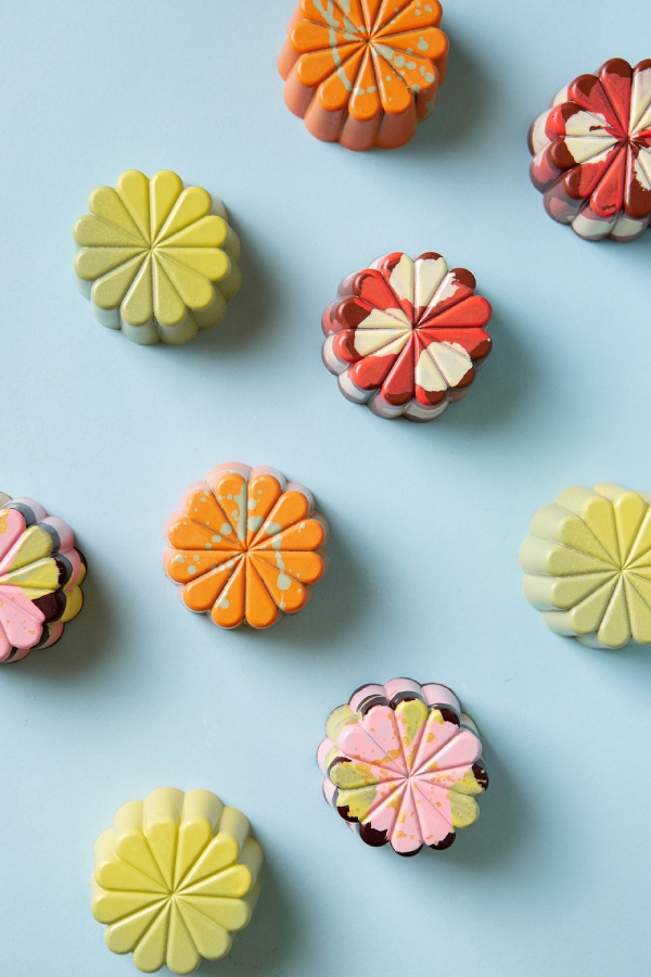 The 2023 International Chocolate Awards winner, Mr. Bucket Chocolaterie is kicking off the mid-autumn festival with four beautifully splotchy chocolate mooncakes. There’s Honey Osmanthus and Pistachio and Orange, both of which come with a white chocolate-based ganache and dark chocolate shell. Kinako Mochi adds a praline and mochi to the chocolatey equation, while the Chrysanthemum Pomelo stands out with its bright pomelo jam. Also, instead of your usual ornate drawer box, sets are packed in a picnic-style insulated bag.