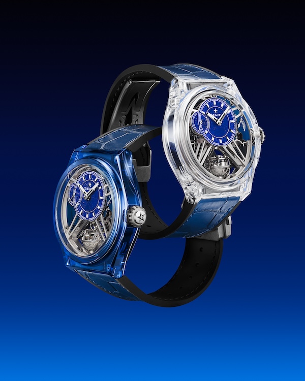 Zenith’s Defy Zero G comes in two variants—a blue full sapphire case  and a transparent full sapphire case.