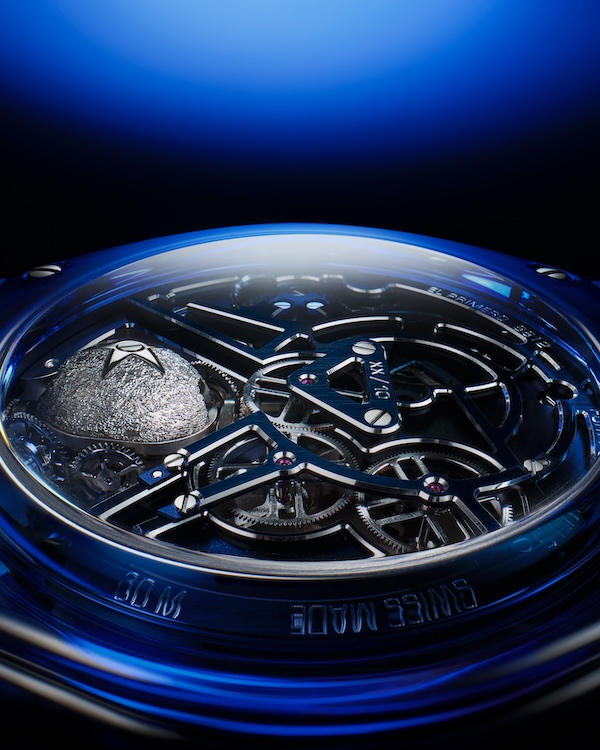 If you didn’t already know, sapphire is the second hardest mineral on earth after diamond, so for the new references to be cut entirely from sapphire blocks is no easy feat. It’s probably a driving factor behind why each reference is limited to only 10 pieces. At 46mm, the cases come in either full blue or full transparent, allowing an unfettered 360-degree view of the Gravity Control module.